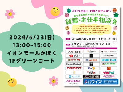6/23(日)イオンモールかほくにて、就職・お仕事相談会! おかげさまで盛況に終了となりました。またイベント情…